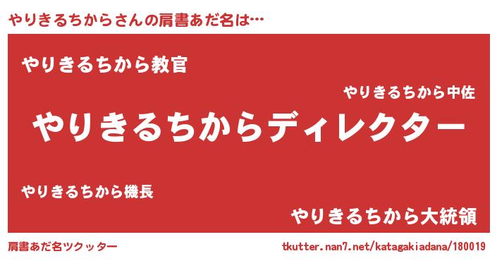 | 男性向けラノベタイトル風あだ名 | 『やりきるちからに滅ぼされるだけの簡単なお仕事です』 |