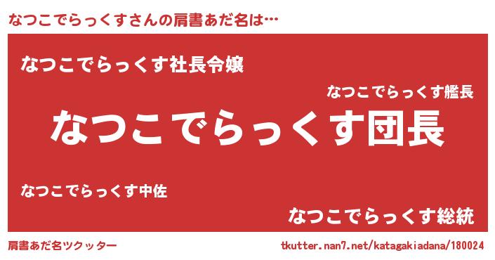 | 女子向けラノベタイトル風あだ名 | 『なつこでらっくすの卵を拾いまして』 |
