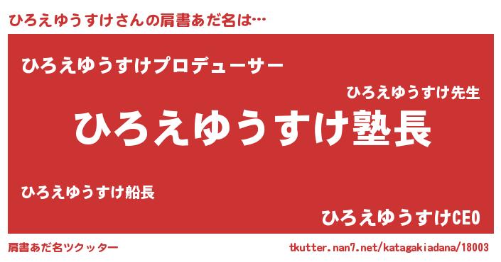 | 男性向けラノベタイトル風あだ名 | 『ダンジョンにひろえゆうすけを求めるのは間違っているだろうか』 |