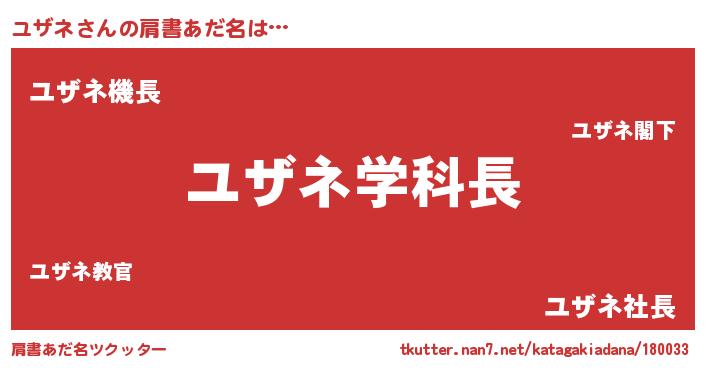 | 男性向けラノベタイトル風あだ名 | 『おまえをオタクにしてやるから、俺をユザネにしてくれ! 』 |