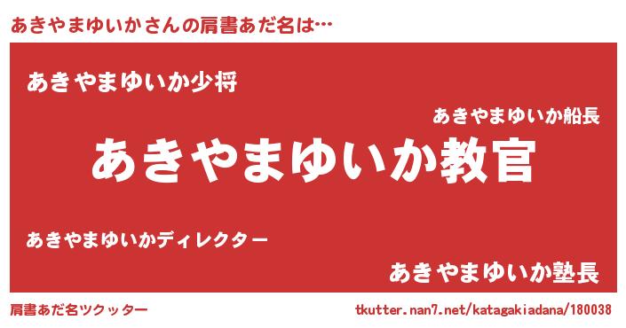 | 男性向けラノベタイトル風あだ名 | 『この素晴らしい世界にあきやまゆいかを!』 |