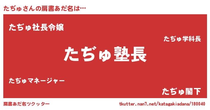 | 意味不明あだ名 | 『とにかく怪しいたぢゅ』『自称たぢゅ』 |