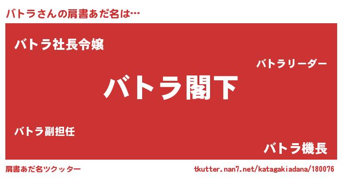 | ヘコむあだ名 | 『バトにゅー』『バトっぺ』『つくし』 |