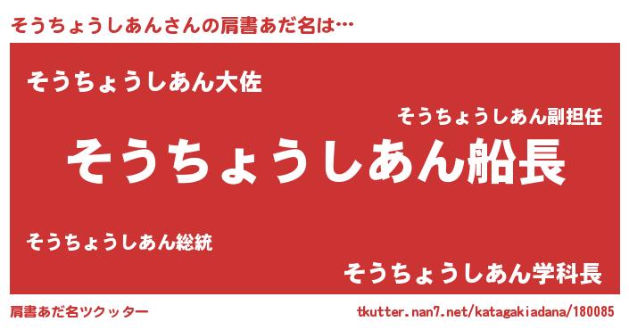 | ヘコむあだ名 | 『そうちょうしあん(笑)』『そうふぇ~』 |