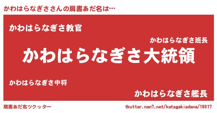 | 意味不明あだ名 | 『かわはらなぎさフォーエバー』 |