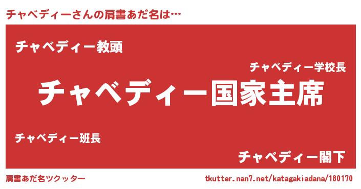 | 欧米人風あだ名 | 『チャベディークリステル』 |