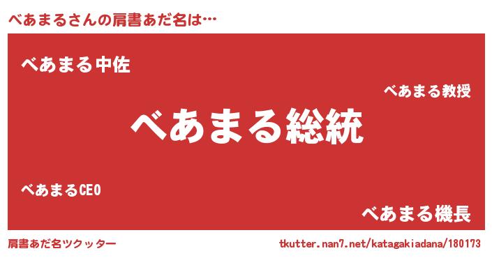| 意味不明あだ名 | 『自称べあまる』『たけのこ科べあまる属』 |
