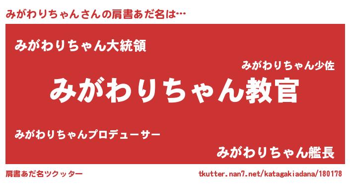| 意味不明あだ名 | 『住所不定無職みがわりちゃん(6歳)』 |