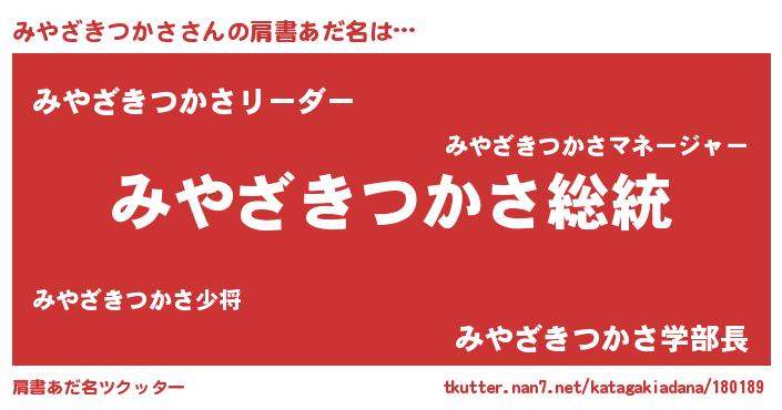 | ポケモン風あだ名 | 『ミヤセウス』『ヒミヤザキツカサ』 |