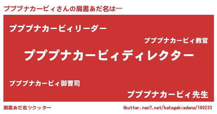 | 意味不明あだ名 | 『とにかく怪しいプププナカービィ』 |