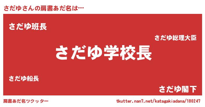 | 女子向けラノベタイトル風あだ名 | 『死神さだゆの再婚』『さだゆ様がみてる』 |