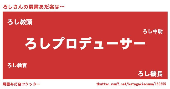 | 男性向けラノベタイトル風あだ名 | 『ろしに滅ぼされるだけの簡単なお仕事です』 |