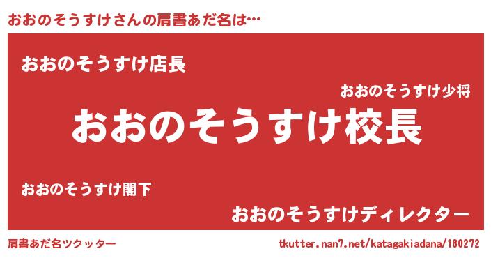 | 男性向けラノベタイトル風あだ名 | 『おおのそうすけという概念が存在しない退屈な世界 』 |