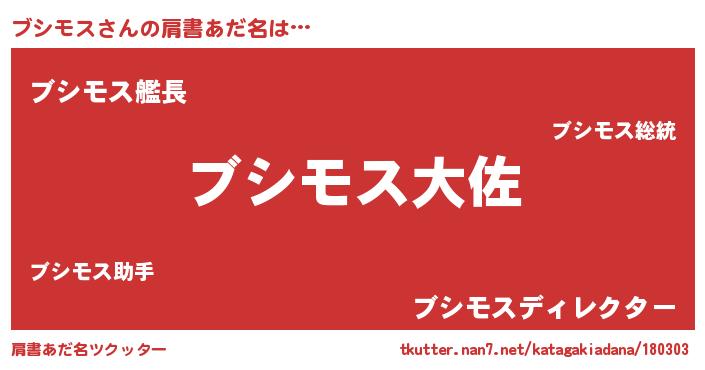 | 男性向けラノベタイトル風あだ名 | 『転生したらブシモスだった件』 |