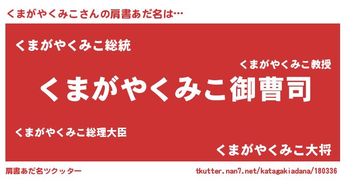 | 女子向けラノベタイトル風あだ名 | 『(仮)くまがやくみこのやんごとなき事情』 |