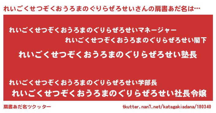 | 胡散臭い通販商品みたいなあだ名 | 『信頼と実績のネックレス…その名も「れいごくせつぞくおうろまのぐりらぜろせい」』 |