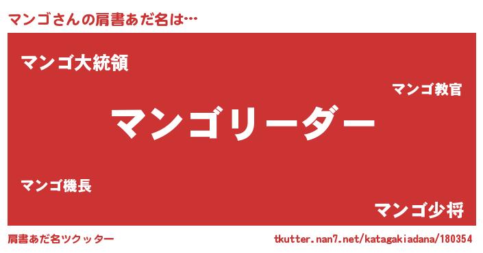 | 女子向けラノベタイトル風あだ名 | 『マンゴは平凡を望む』 |