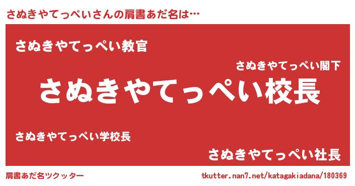 | 胡散臭い通販商品みたいなあだ名 | 『来世でも幸せになれる健康食品…その名も「さぬきやてっぺい」』 |