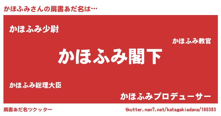 | 男性向けラノベタイトル風あだ名 | 『Re:かほふみから始める異世界生活』 |