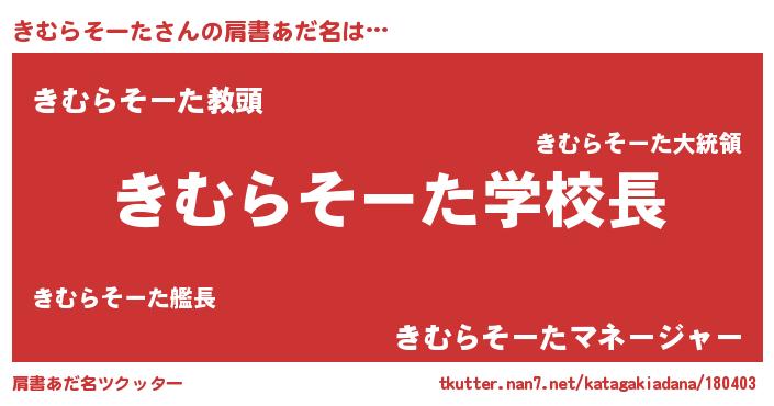 | 男性向けラノベタイトル風あだ名 | 『おまえをオタクにしてやるから、俺をきむらそーたにしてくれ! 』 |