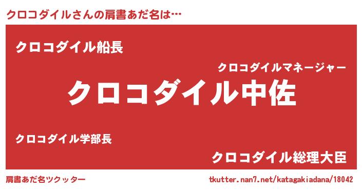 | 女子向けラノベタイトル風あだ名 | 『クロコダイルの玉の輿計画!』 |