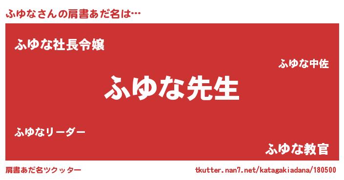 | 欧米人風あだ名 | 『ダルビッシュふゆな』『マイケルふゆな』 |