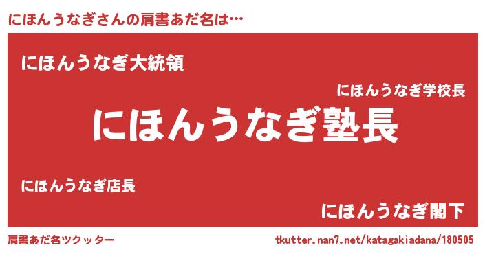 | 男性向けラノベタイトル風あだ名 | 『にほんうなぎの嫁は女の子じゃないと思った?』 |