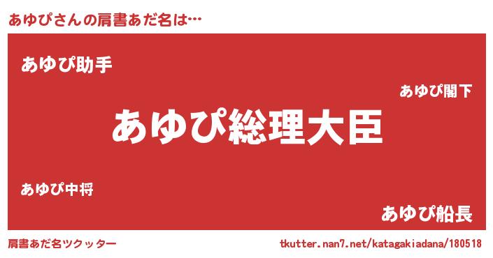 | 男性向けラノベタイトル風あだ名 | 『やはりあゆぴの青春ラブコメはまちがっている 』 |