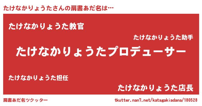 | ヒーロー風カッコイイあだ名 | 『仮面タケダー』『ネオタケナカリョウタ』 |