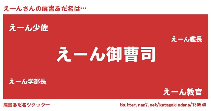 | 男性向けラノベタイトル風あだ名 | 『えーんの憂鬱』『魔弾の王とえーん』 |