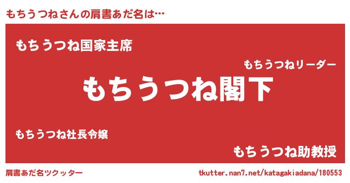 | 女子向けラノベタイトル風あだ名 | 『もちうつねなんてお断りですっ。』 |