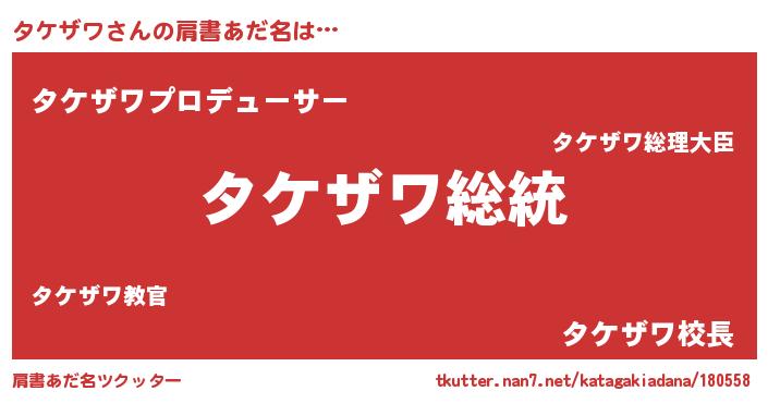 | 意味不明あだ名 | 『自称タケザワ』『永久保存タケザワ』 |