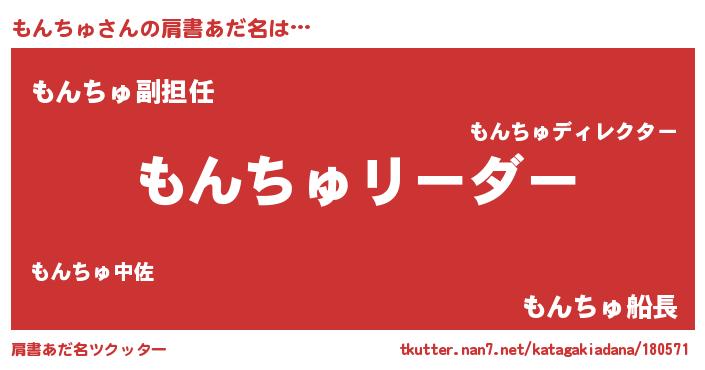 | ヘコむあだ名 | 『もんぷりん』『もんちゅ(震え声)』 |