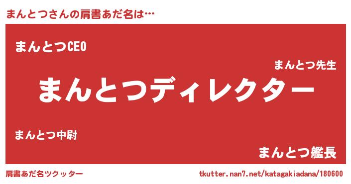| ヘコむあだ名 | 『まんにゅー』『まんとつ(笑)』 |