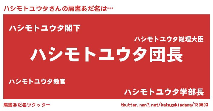 | 欧米人風あだ名 | 『ウサインハシモトユウタ』 |