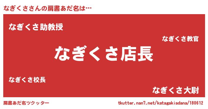 | 欧米人風あだ名 | 『マイケルなぎくさ』『ダニエルなぎくさ』 |