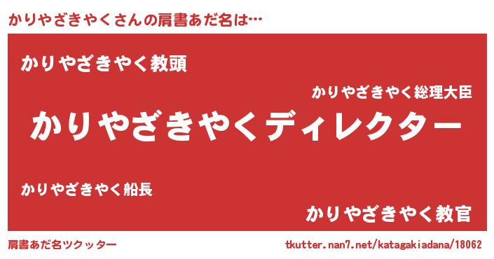 | 男性向けラノベタイトル風あだ名 | 『はたらくかりやざきやくさま!』 |