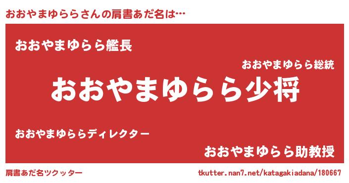 | 女子向けラノベタイトル風あだ名 | 『おおやまゆららの玉の輿計画!』 |