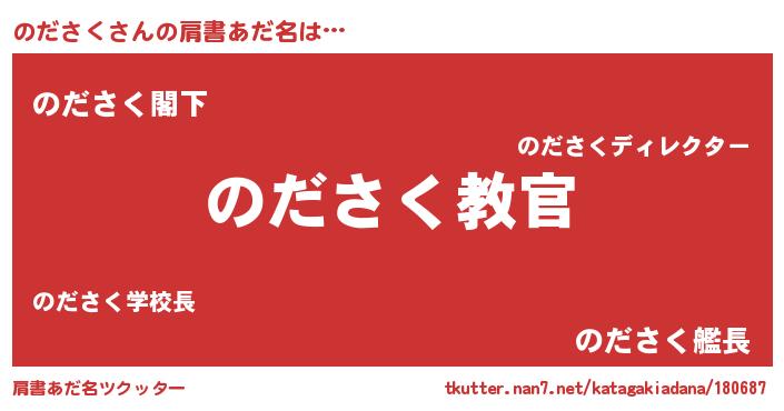 | ヒーロー風カッコイイあだ名 | 『仮面ノダダー』『ウルトラ戦士ノダサク』 |