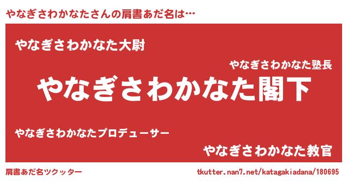 | 意味不明あだ名 | 『自称やなぎさわかなた』 |