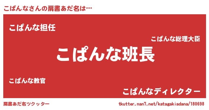 | 意味不明あだ名 | 『とにかく怪しいこぱんな』 |