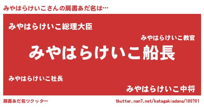| 意味不明あだ名 | 『みやはらけいこフォーエバー』 |