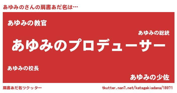 | ヒーロー風カッコイイあだ名 | 『仮面アユダー』『最強戦士アユミノ』 |