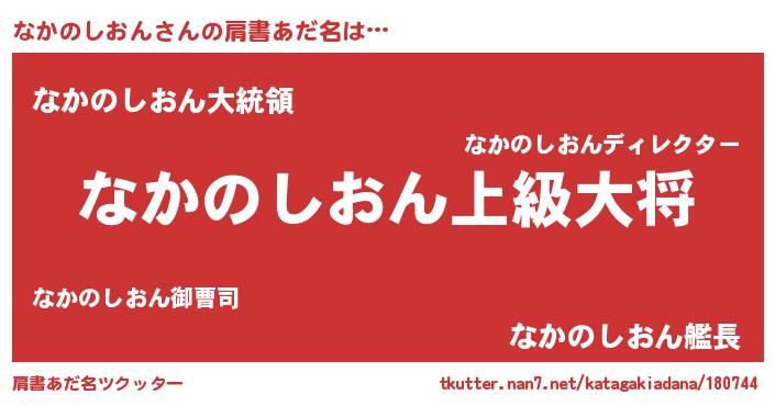 | 男性向けラノベタイトル風あだ名 | 『転生したらなかのしおんだった件』 |
