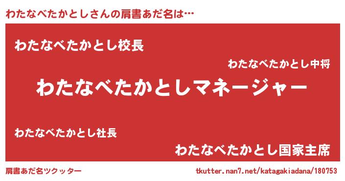 | 意味不明あだ名 | 『永久保存わたなべたかとし』 |