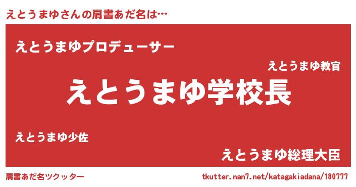 | 欧米人風あだ名 | 『ダニエルえとうまゆ』 |