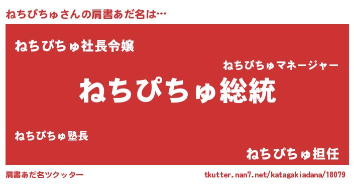| 男性向けラノベタイトル風あだ名 | 『Re:ねちぴちゅから始める異世界生活』 |