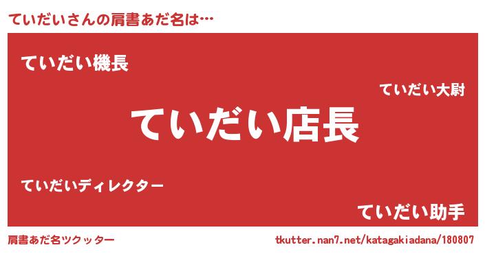 | ヘコむあだ名 | 『ていにゅー』『ていだい(遠い目)』 |