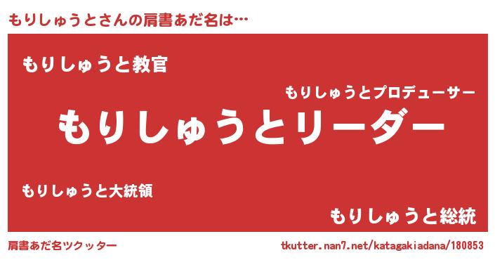 | 女子向けラノベタイトル風あだ名 | 『もりしゅうとは平凡を望む』 |