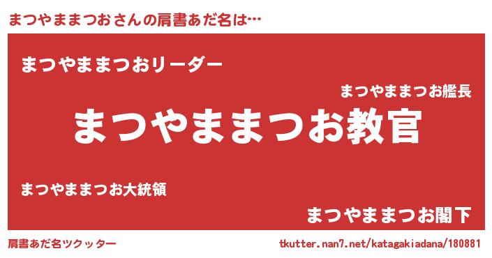 | 男性向けラノベタイトル風あだ名 | 『この素晴らしい世界にまつやままつおを!』 |